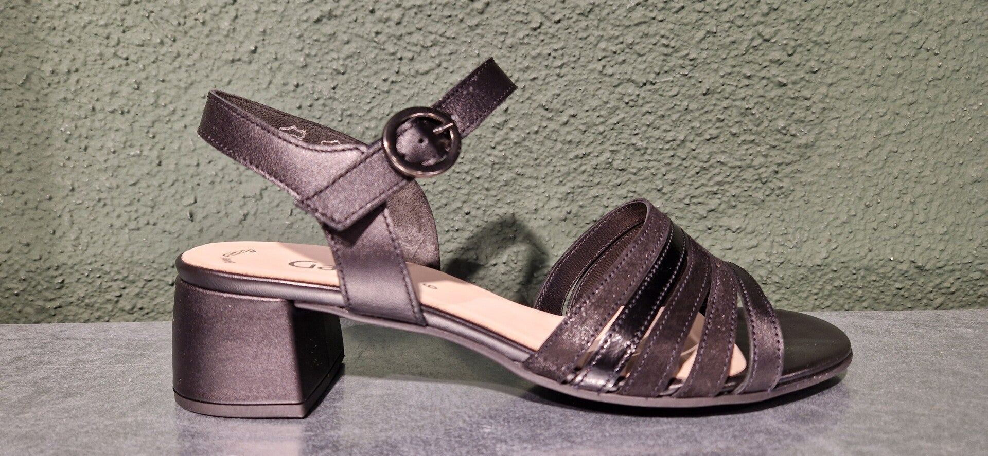Sandaal van Gaor in zwart glad leer en lack.